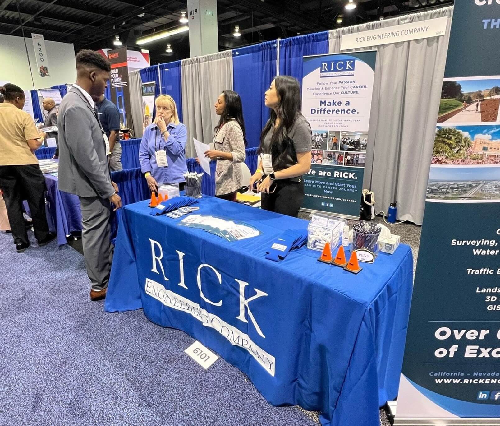 The event hall was filled with interactive and eye-catching booths and exhibits, providing both students and professionals with multiple opportunities to expand their knowledge about what the STEM field has to offer in unique ways. The attendance also proved very impressive. Our team met a few NSBE leaders, and they shared an incredible convention attendance number of over 9,400 people. The RICK booth was continuously active and filled with enthusiastic, eager students in civil engineering, urban planning, transportation engineering, and more. Team RICK engaged in conversations focused on why we enjoy working for RICK, the team environment, what our day-to-day jobs are like, what drew us into the field, our personal experiences, and RICK’s mentorship offerings. It was so impressive to see how accomplished so many of the attendees were, even early in their professional careers. We also met several professionals in the engineering community, and shared insights on the industry, potential career moves to RICK, and our goals for career candidates. Attendees hailed from across the country, and several of them were from the East Coast or Midwest, but enthusiastic about making a move to the West Coast for career opportunities like those at RICK.